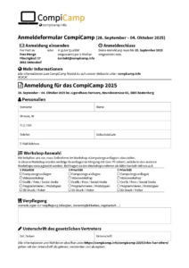 Das Anmeldeformular für das CompiCamp muss von deinen Eltern oder Erziehungsberechtigten unterschrieben bis spätestens am 15. September 2025 an uns gesendet werden.